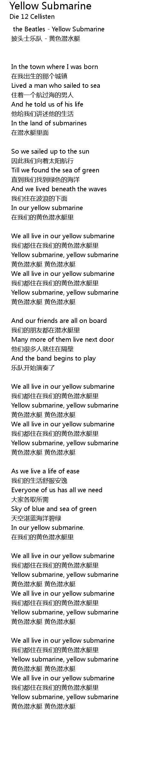 | Yellow submarine, yellow submarine | |
