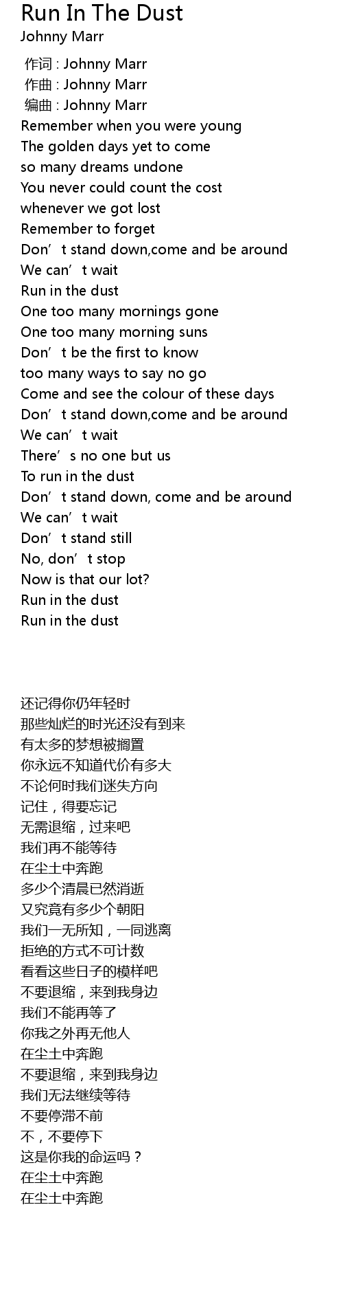 | [01:23.51] | Run in the dust |