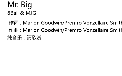 | [00:00.000] | 作词 : Marlon Goodwin/Premro Vonzellaire Smith |