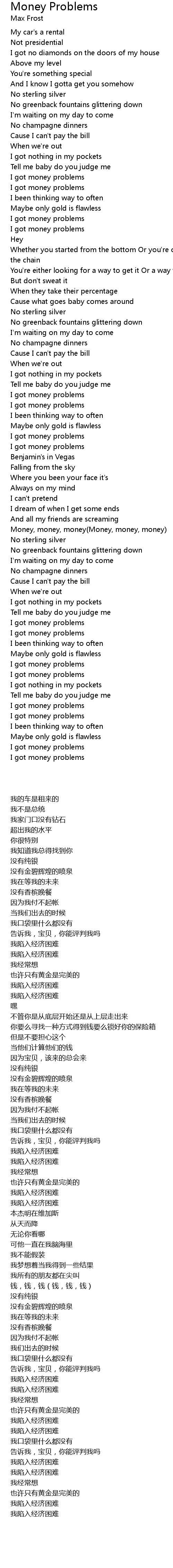 | [01:31.99] | I got money problems |
