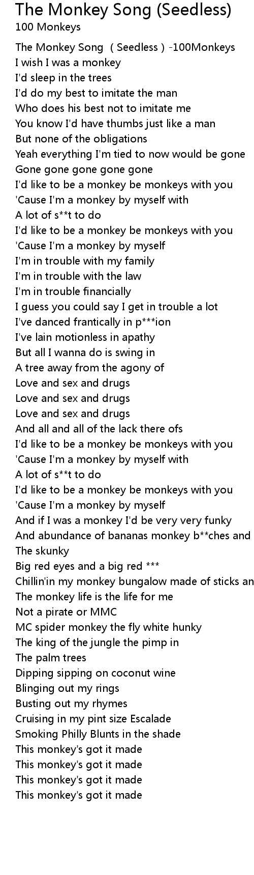 | [00:00.257] | The Monkey Song Seedless 100Monkeys |