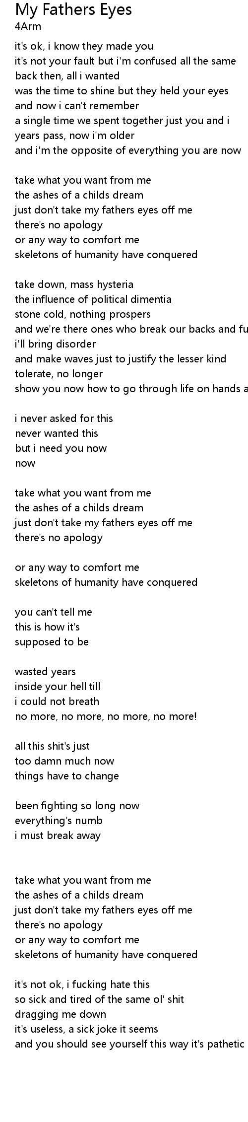 just don't take my fathers eyes off me |