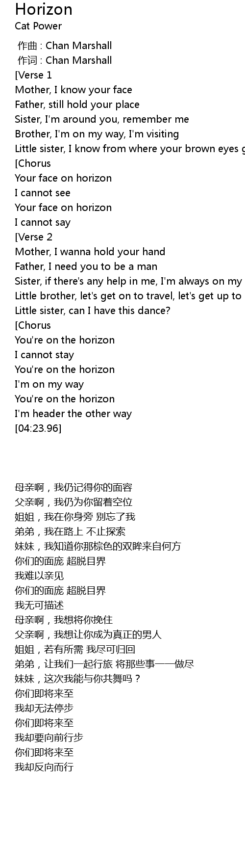 | [01:43.60] | Your face on horizon |