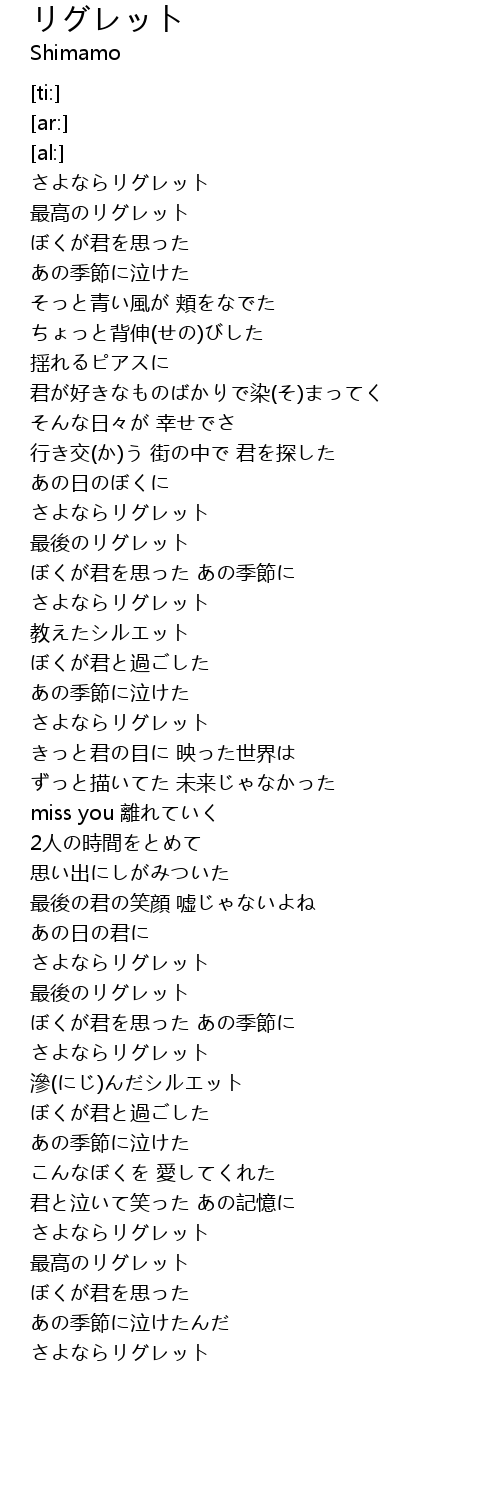 | [00:07.75] | さよならリグレット |