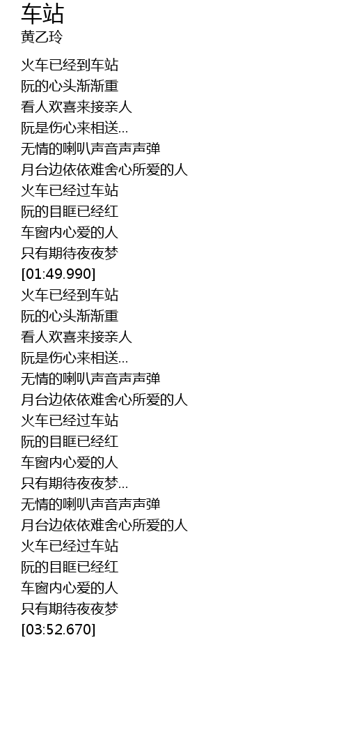 | [01:17.850] | 月台边依依难舍心所爱的人 |