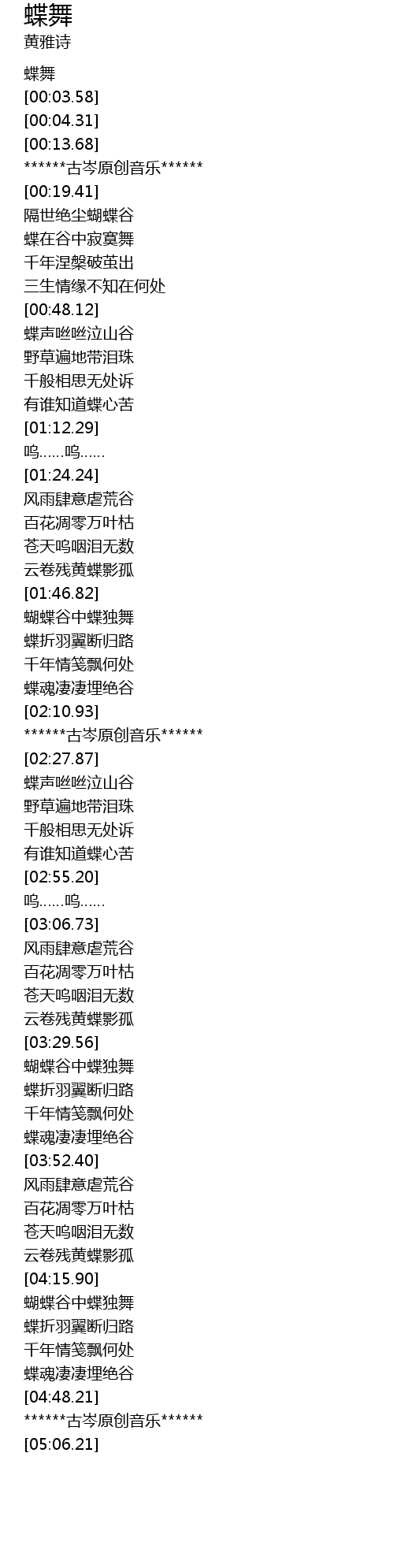 | [04:16.79] | 蝴蝶谷中蝶独舞 |