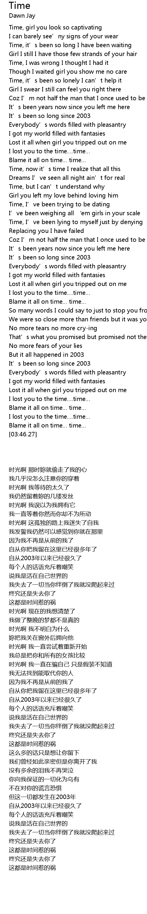 | [03:17.73] | I lost you to the time. time |