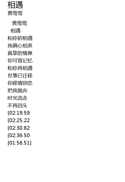 | [02:42.56][02:19.59][01:30.70][01:08.97] | wang ri de qing he yi |
