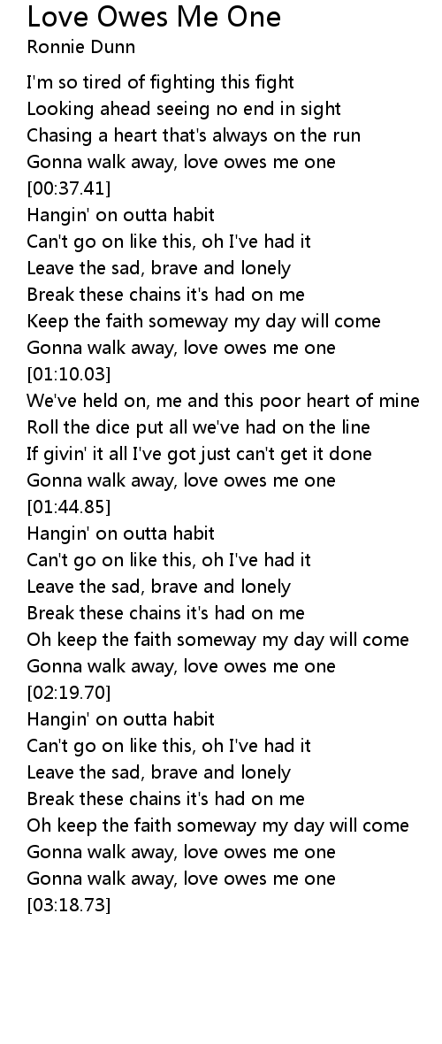 Gonna walk away, love owes me one |