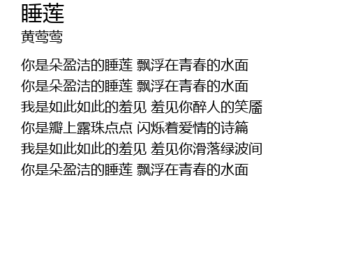 | [00:46.50] | 你是朵盈洁的睡莲 飘浮在青春的水面 |