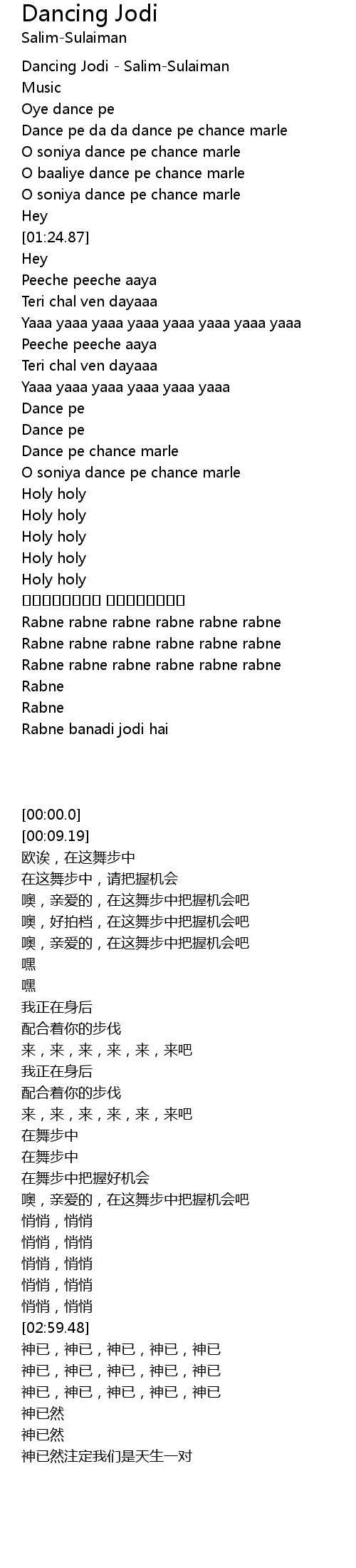 | [00:00.0] | Dancing Jodi - Salim-Sulaiman |