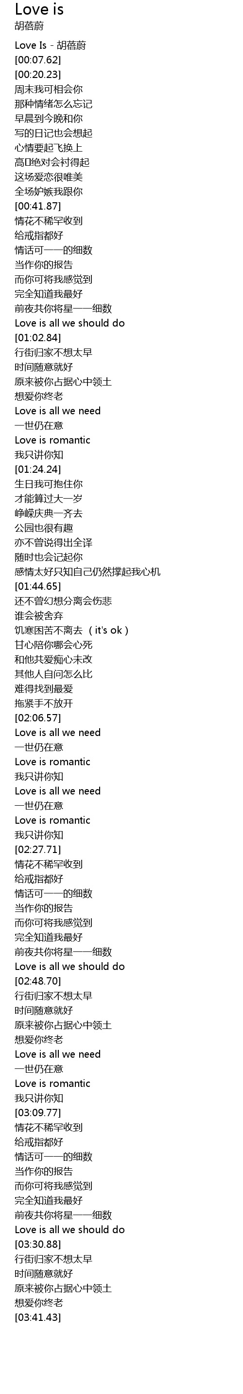 | [00:02.44] | Love Is - 胡蓓蔚 |
