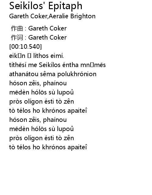 | [00:18.847] | títhēsí me Seikílos éntha mnḗmēs |