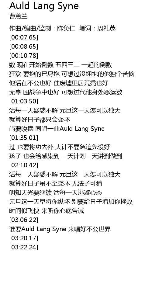 | [03:10.53] | 谁要Auld Lang Syne 来唱好不公世界 |