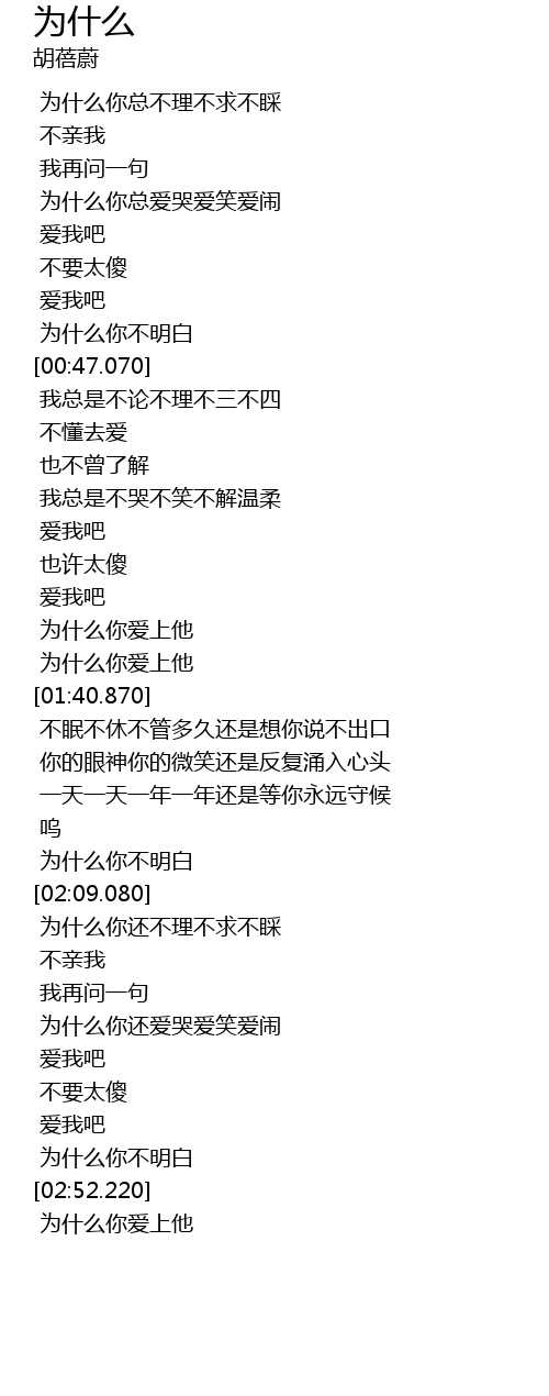 | [02:24.910] | wei shi me ni hai ai ku ai xiao ai nao |