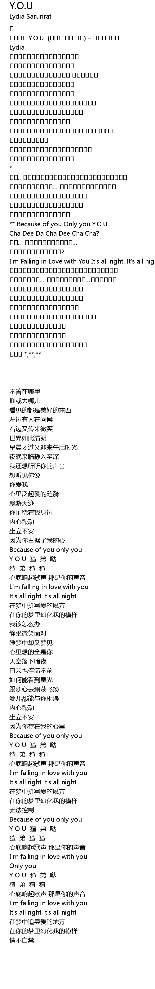 เพลง Y.O.U. (วาย โอ ยู) – ลิเดีย Lydia |