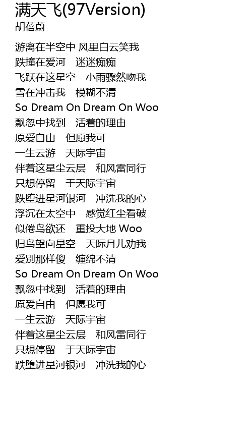 | [00:32.55] | fei yue zai zhe xing kong xiao yu zhou ran wen wo |