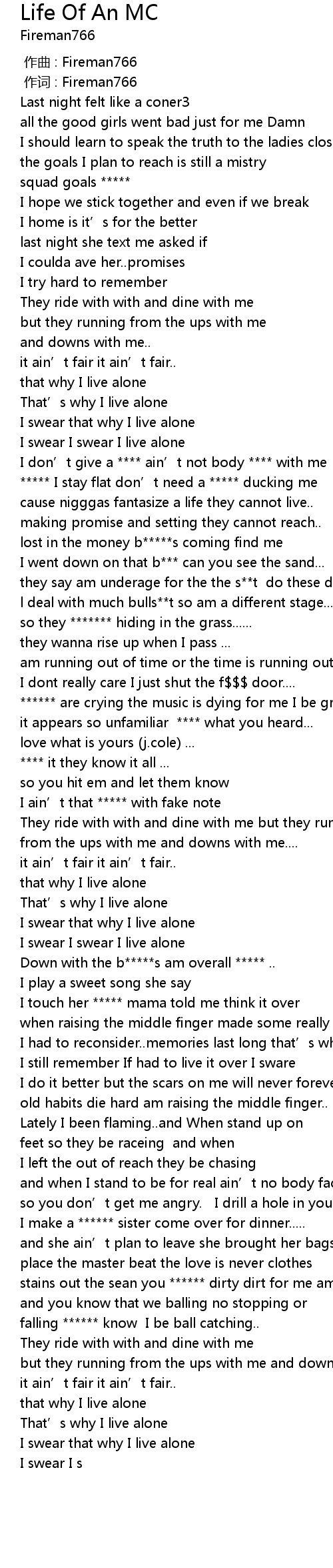 | [02:35.21] | Down with the b*****s am overall ***** .. |