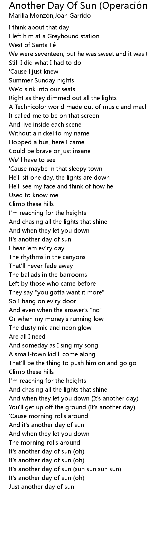 | [02:15.91] | It's another day of sun (sun sun sun sun) |