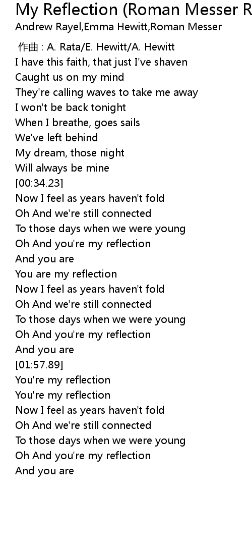 | [00:58.02] | Oh And you're my reflection |