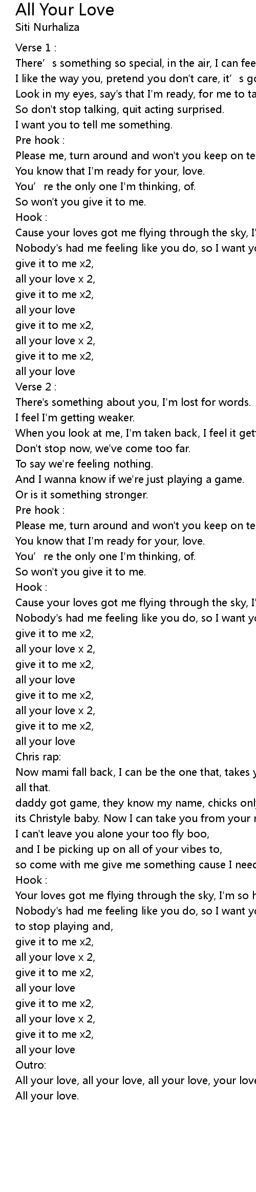 | Cause your loves got me flying through the sky, I'm so high. | |