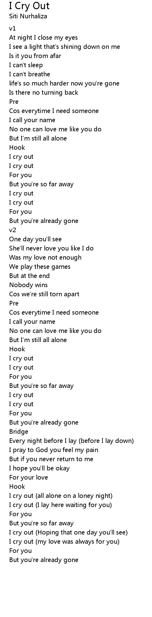 I cry out (my love was always for you) |