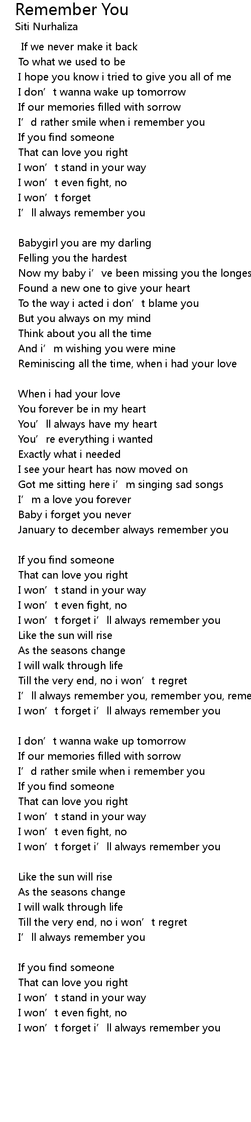 | I won' t forget i' ll always remember you | |