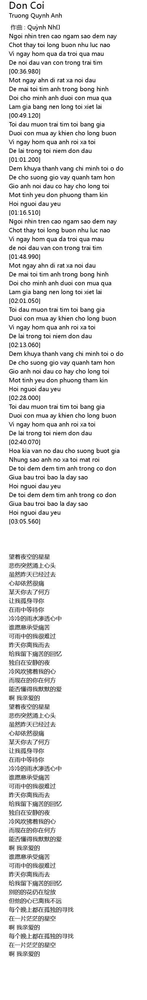 | [02:55.380] | De toi dem dem tim anh trong co don |