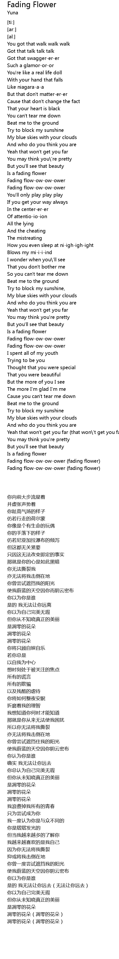| [02:53.54] | Fading flow-ow-ow-ower (fading flower) |