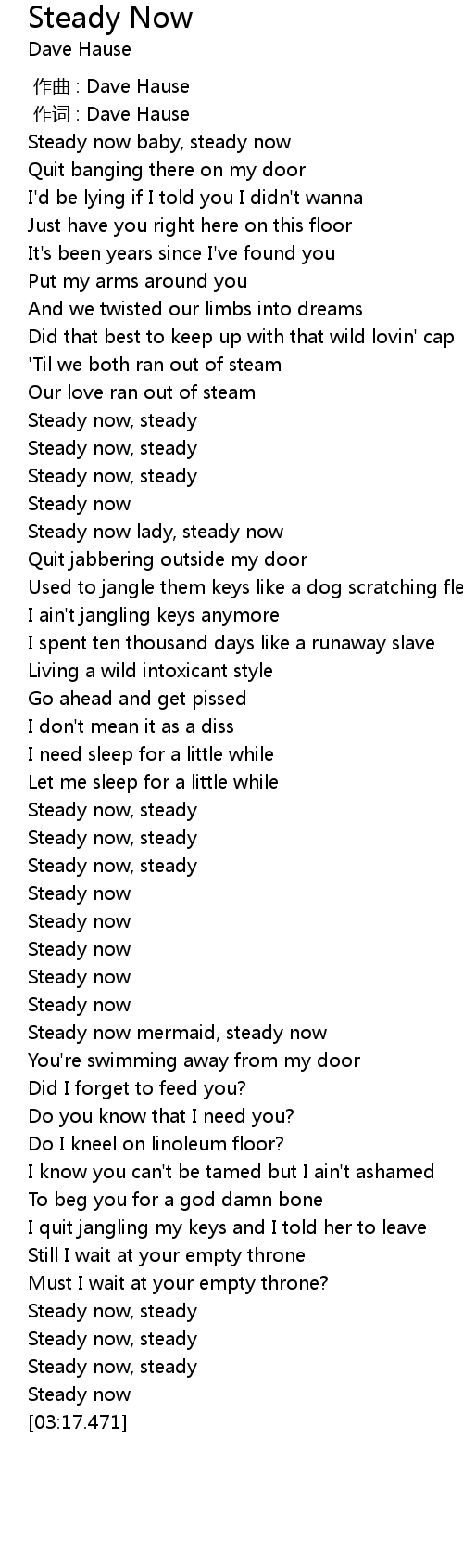 | [00:07.949] | Steady now baby, steady now |