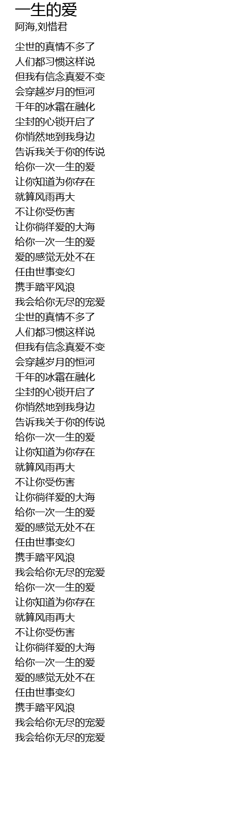 | [03:30.490] | gěi nǐ yī cì yī shēng de ài |