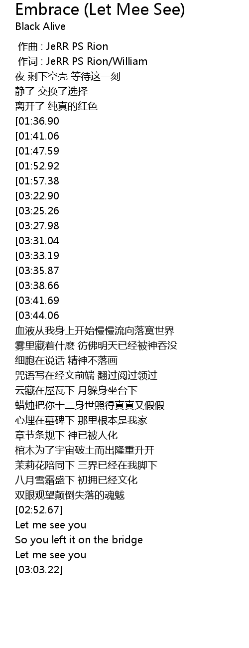 | [00:01.00] | 作词 : JeRR PS Rion/William |