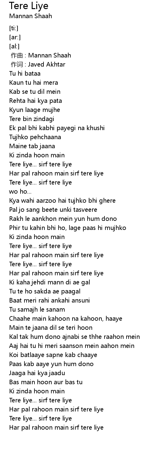 | [02:41.31] | Tere liye... sirf tere liye |