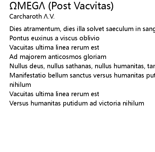 | Song | ΩMEGΛ (Post Vacvitas) |