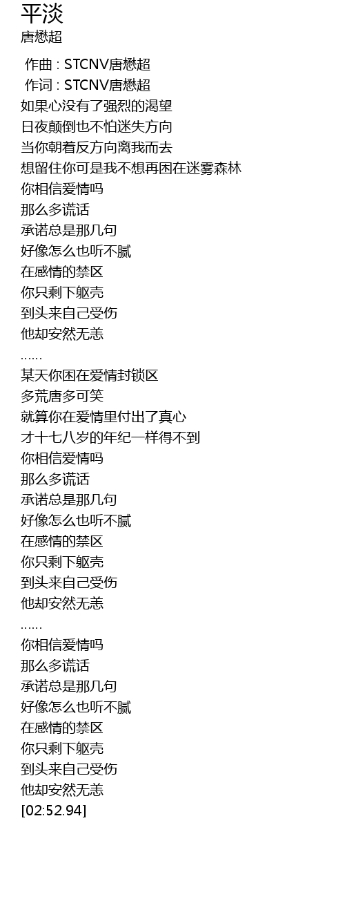 | [00:01.000] | 作词 : STCNV唐懋超 |