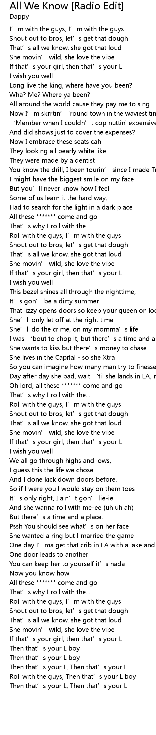 | [00:17.72] | That' s all we know, she got that loud |