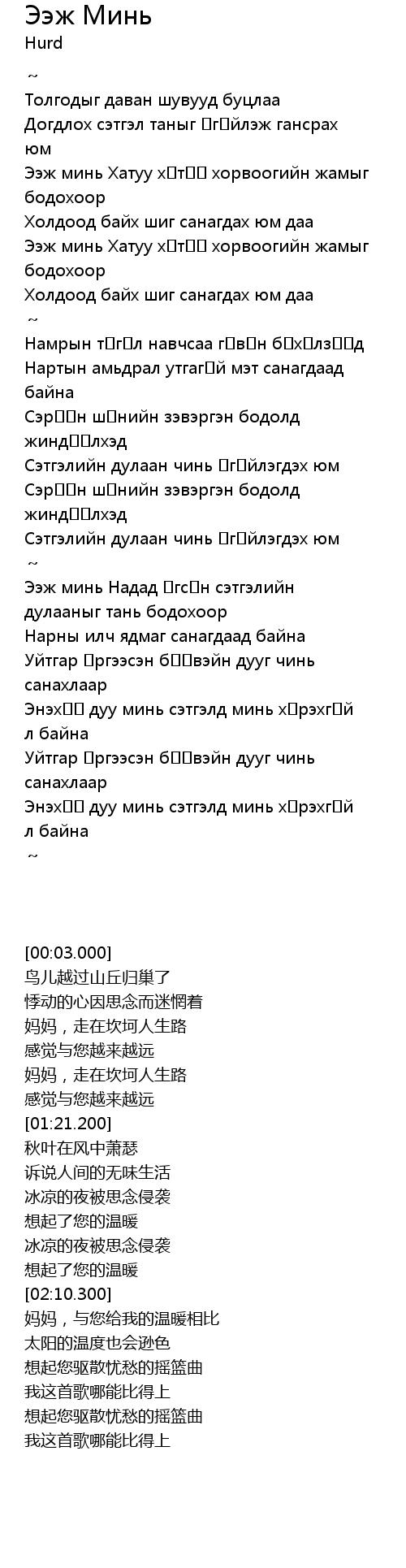 Ээж минь Хатуу хүтүү хорвоогийн жамыг бодохоор |