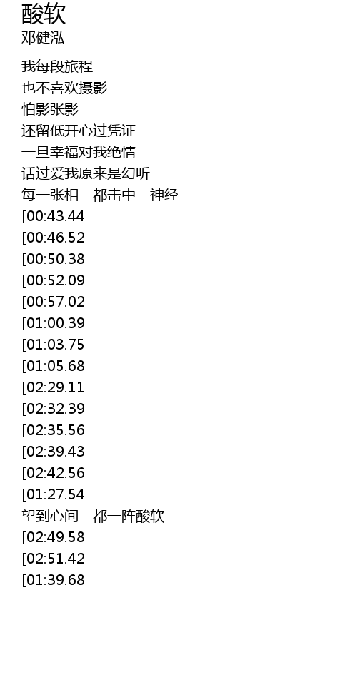 | [03:13.34] | 望到心间 都一阵酸软 |