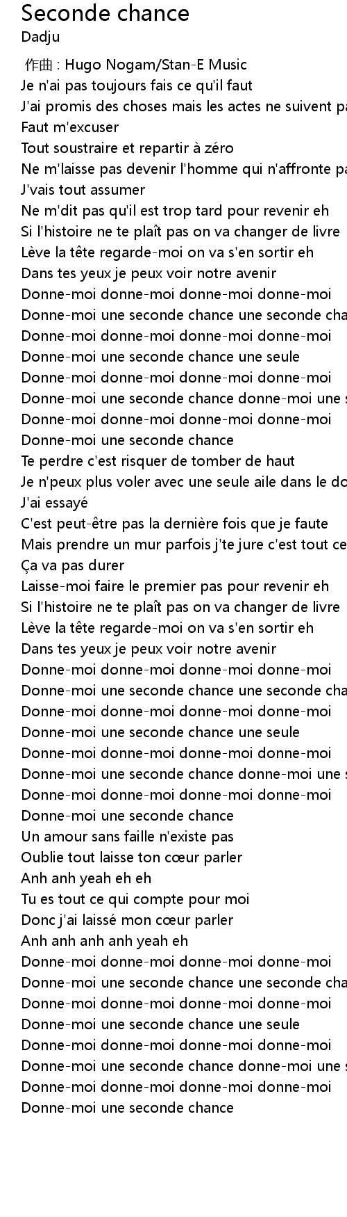 | [01:08.34] | Donne-moi une seconde chance donne-moi une seule chance |