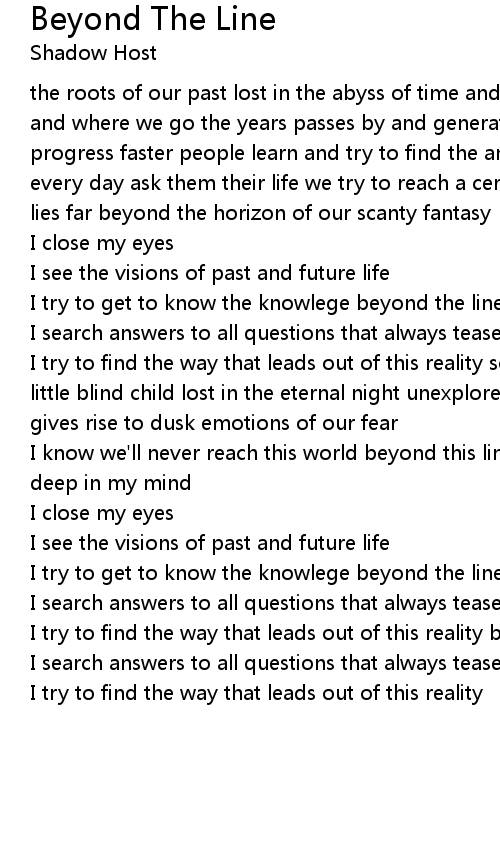 I try to find the way that leads out of this reality beyond the line |