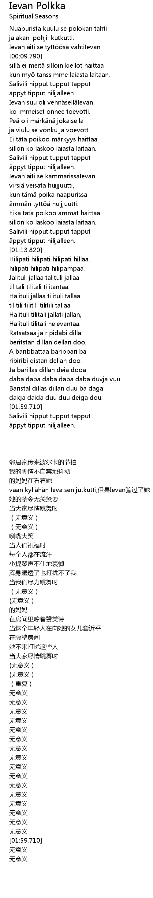 | [00:19.760] | Ievan suu oli vehn sell Ievan |