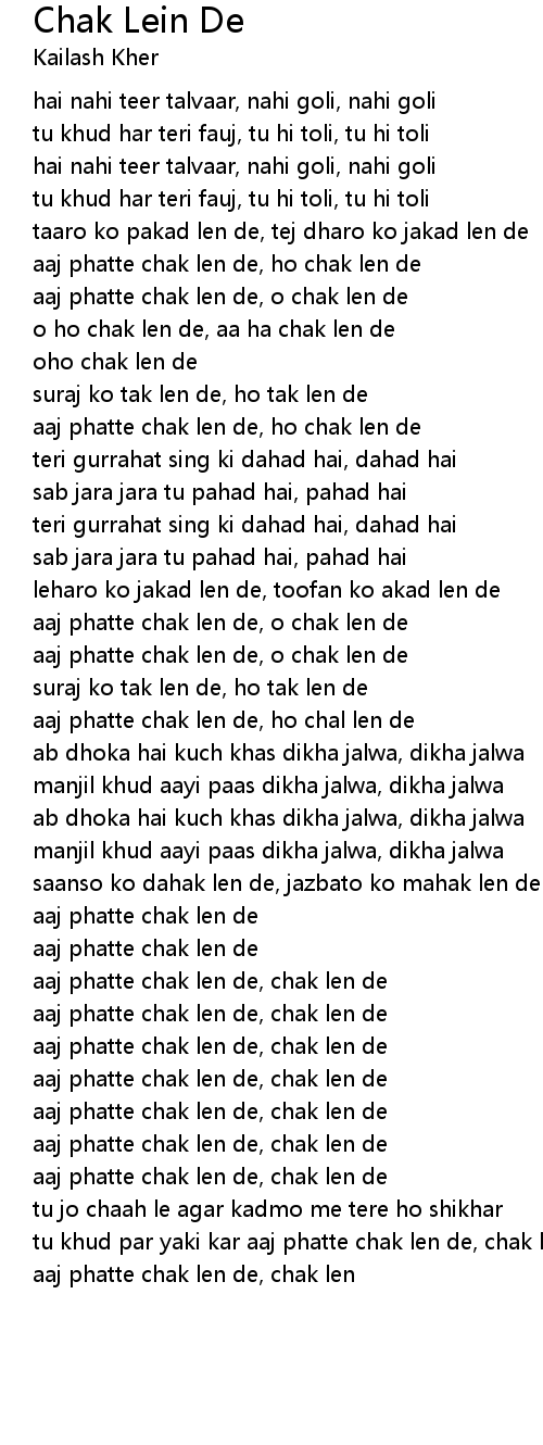 aaj phatte chak len de, chak len de |