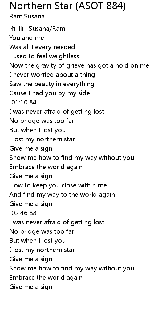 | [05:07.91] | I lost my northern star |