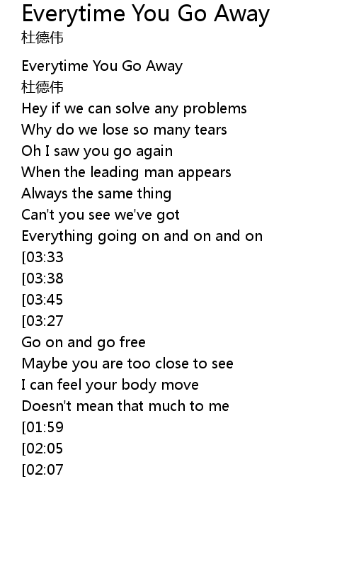 | [03:57][03:33][03:10][02:11][01:01] | Everytime you go away |