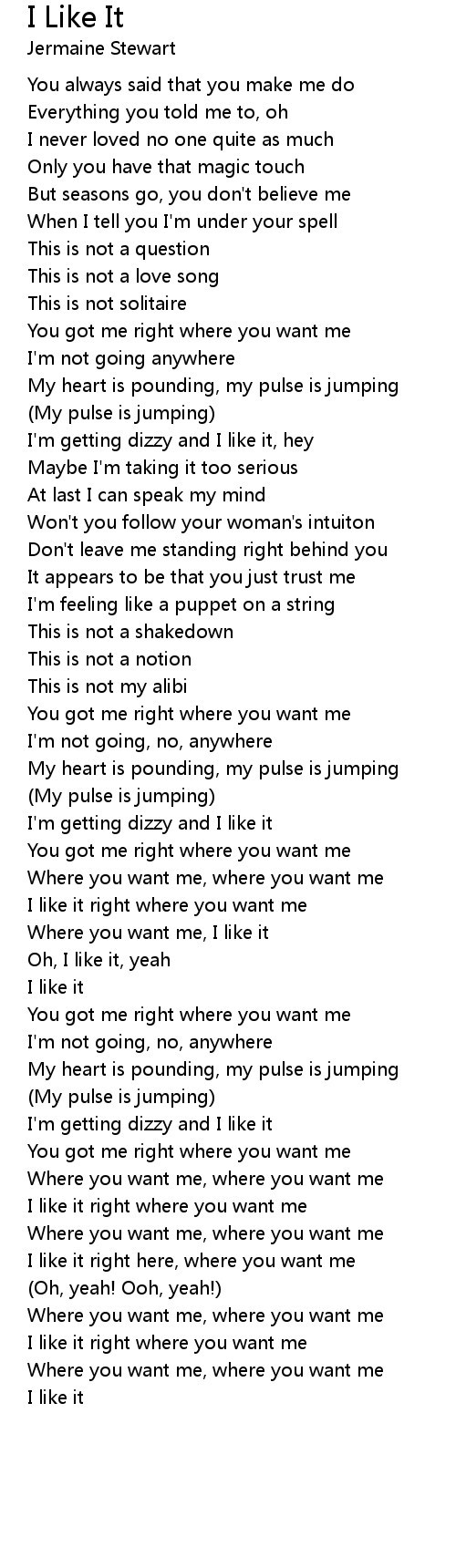 I like it right where you want me |