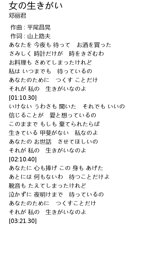 | [01:02.80] | それが 私の 生きがいなのよ |