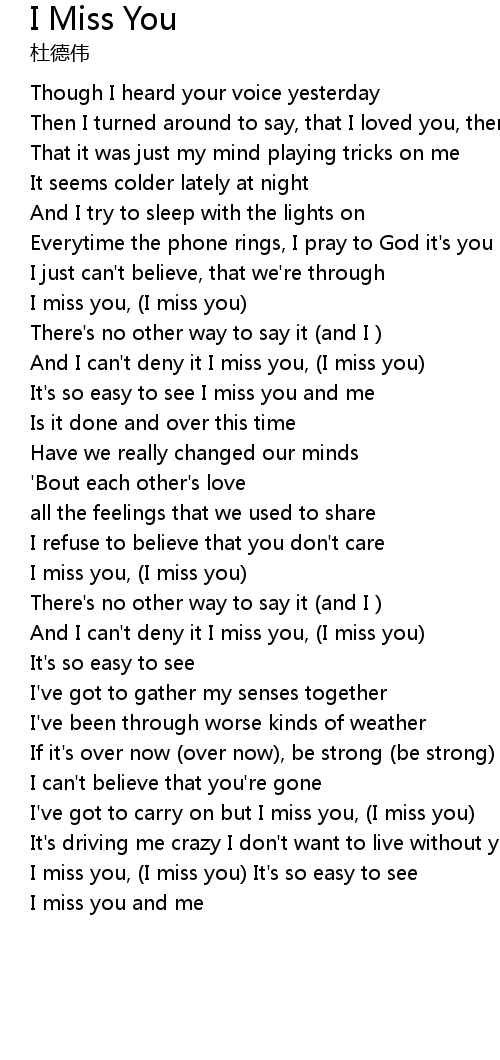 And I can't deny it I miss you, (I miss you) |