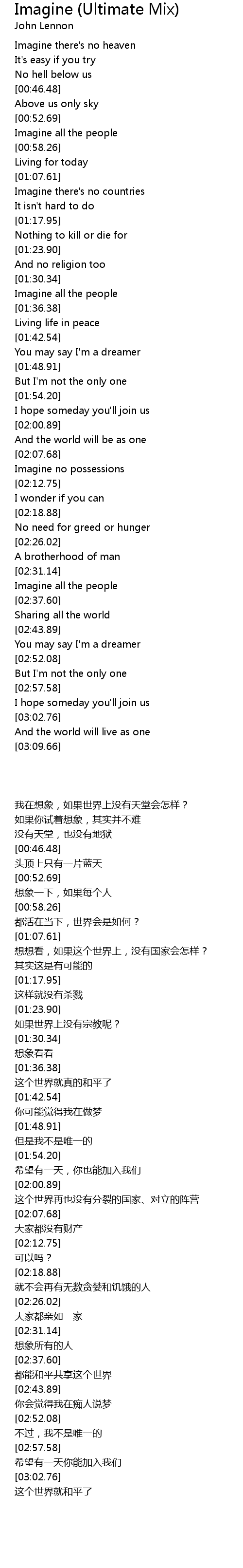 And the world will live as one |