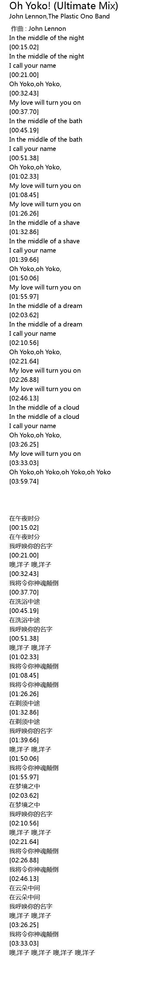 | [03:36.86] | Oh Yoko, oh Yoko, oh Yoko, oh Yoko |