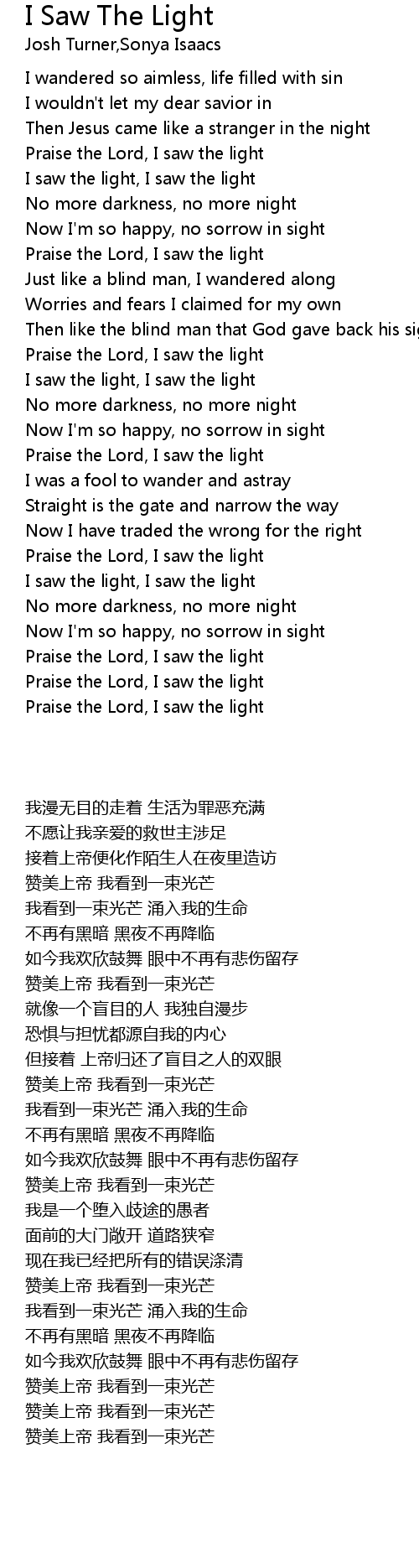 I saw the light, I saw the light |